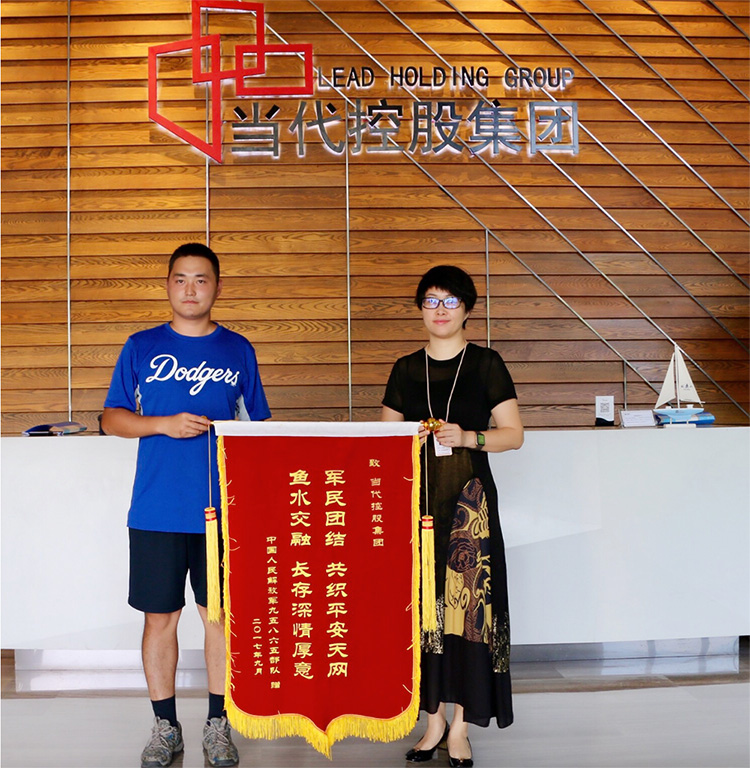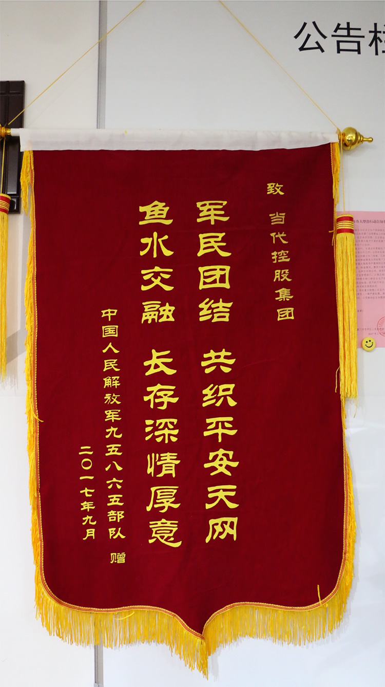 今日上午,中國人民解放軍九五八六五部隊官兵一行蒞臨當代控股集團,對當代在金磚國家領導人廈門會晤籌備過程中對轄區部隊治安、監控等安保工作所作的通力配合和積極貢獻表示感謝,并贈予寫有“軍民團結 共織平安天網;魚水交融,長存深情厚意”的錦旗一面!